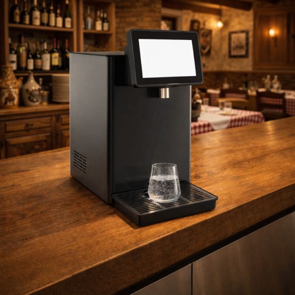 Il frigogasatore per ristoranti sovrabanco è la soluzione ideale per locali che vogliono offrire acqua liscia e frizzante sempre fredda, con un sistema visibile, elegante e immediatamente operativo sul banco di lavoro o di servizio.